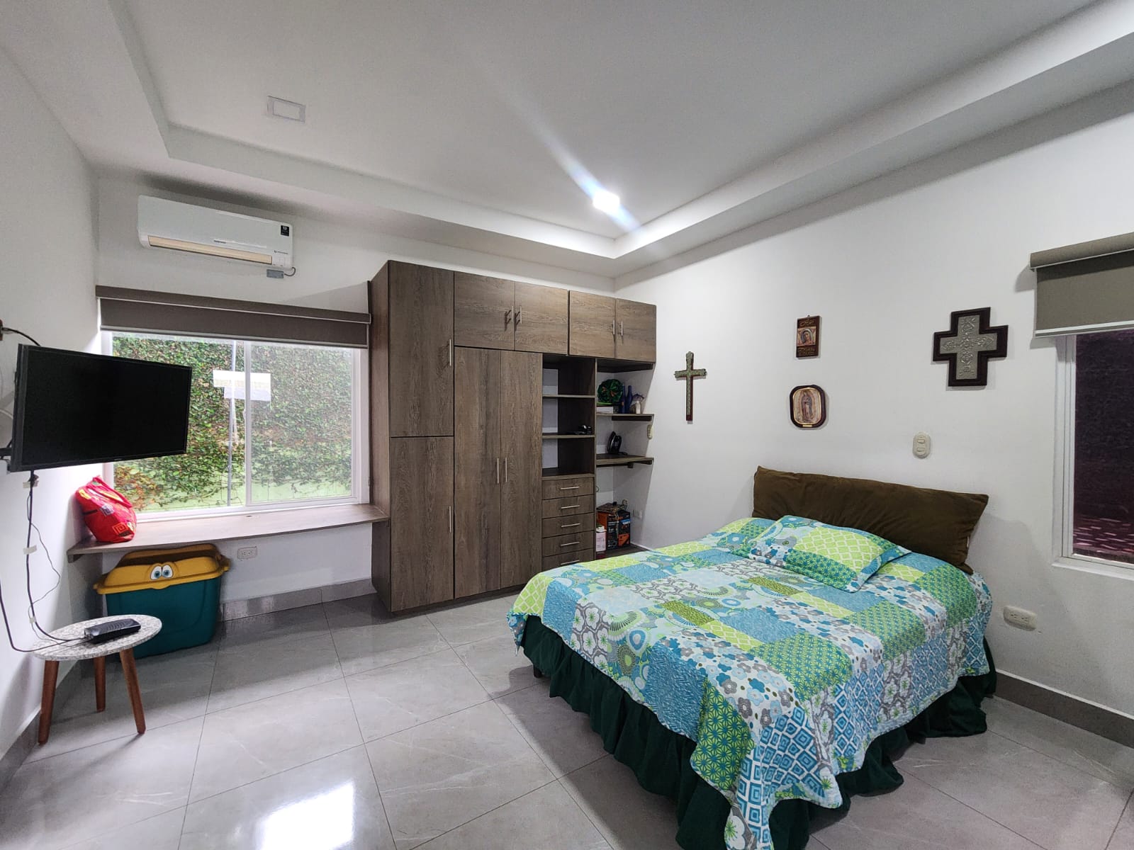 LA CASA CUENTA EN TOTAL CON TRES AMPLIAS HABITACIONES, ESTUDIO Y 2.5 BAÑOS. LA HABITACIÓN PRINCIPAL ES AMPLIA, CUENTA CON WALK IN CLOSET, BAÑO Y AGUA CALIENTE. 1 HABITACIÓN SECUNDARIA CUENTA CON SU BAÑO COMPLETO PRIVADO Y AGUA CALIENTE. DOS HABITACIONES SECUNDARIAS ( PUEDEN SER ESTUDIO U HABITACIÓN) LAS TRES HABITACIONES INCLUYENDO EL ESTUDIO CUENTAN CADA UNA CON AIRE ACONDICIONADO INVERTER.