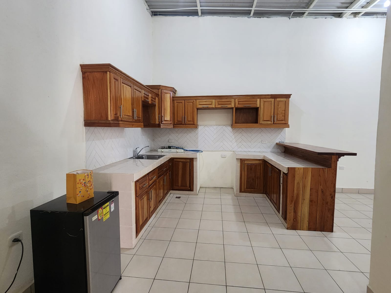 • COCINA CON ENCIMERAS DE CERAMICA, GABINETES DE MADERA Y DESAYUNADOR